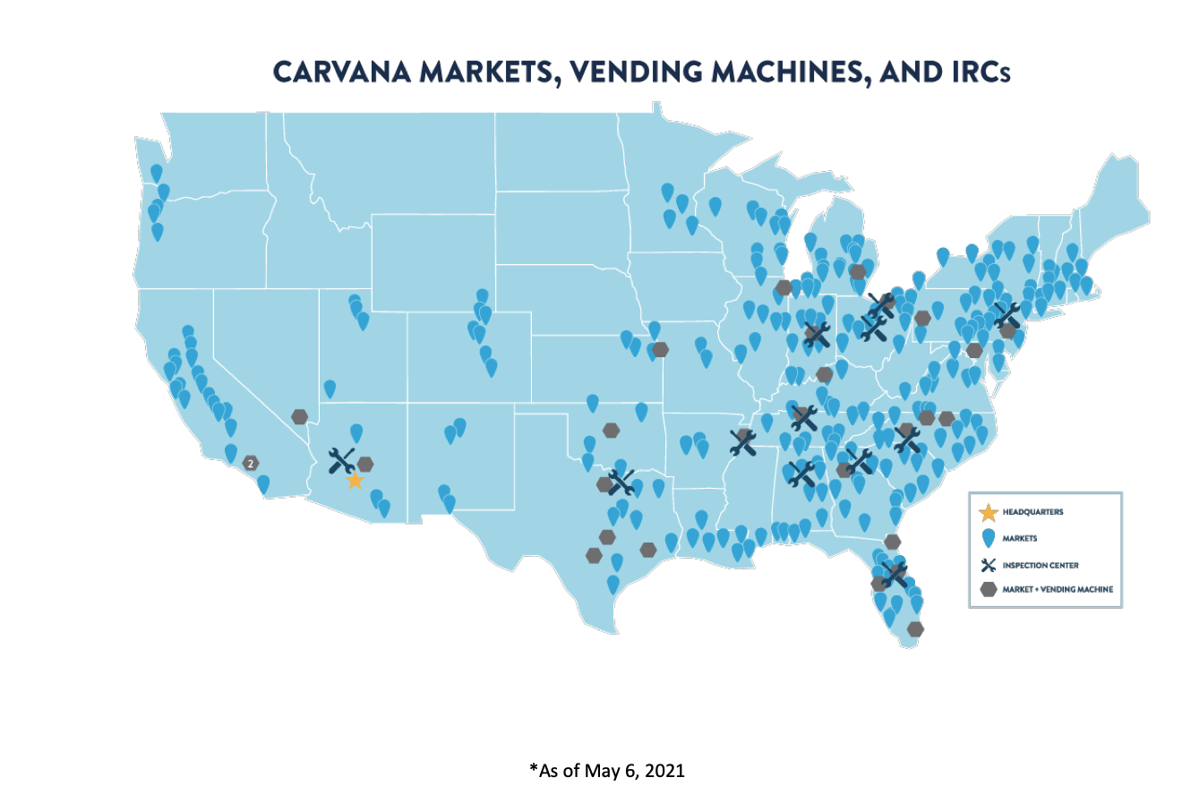 Carvana Locations Map – You can have your vehicle delivered or pick it up from a Carvana location. There are more than 30 Carvana Car Vending Machines throughout the country, but you don’t have to pick up your vehicle . Carvana can pick up and deliver vehicles to your home, but also has dozens of locations to allow you to pick up and deliver yourself and save on costs. Online dealership Carvana advertises itself .