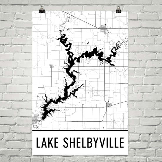 Lake Shelbyville IL Art and Maps – Modern Map Art