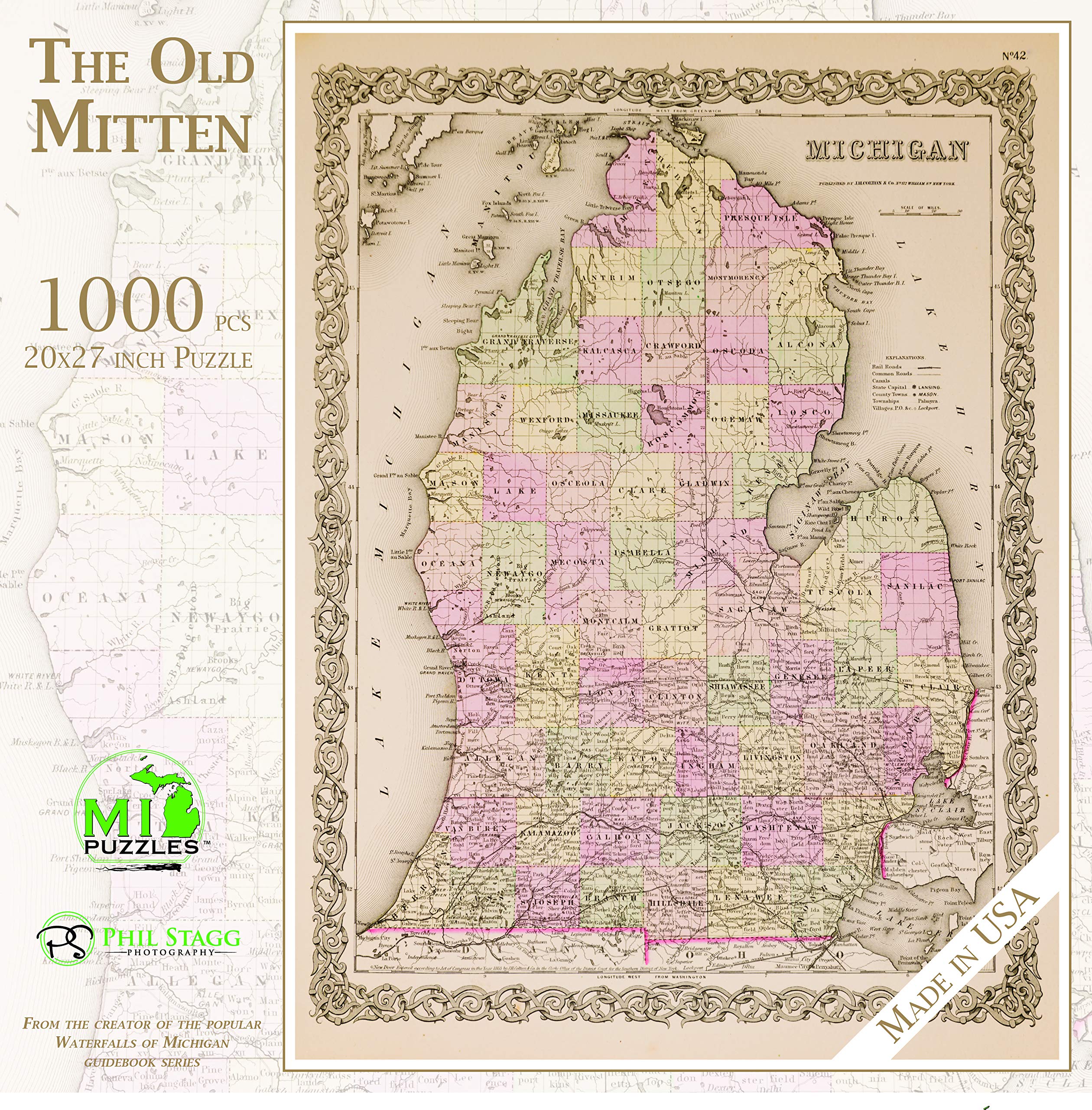 Amazon.com: The Old Mitten Vintage Map of Michigan 1000 Piece