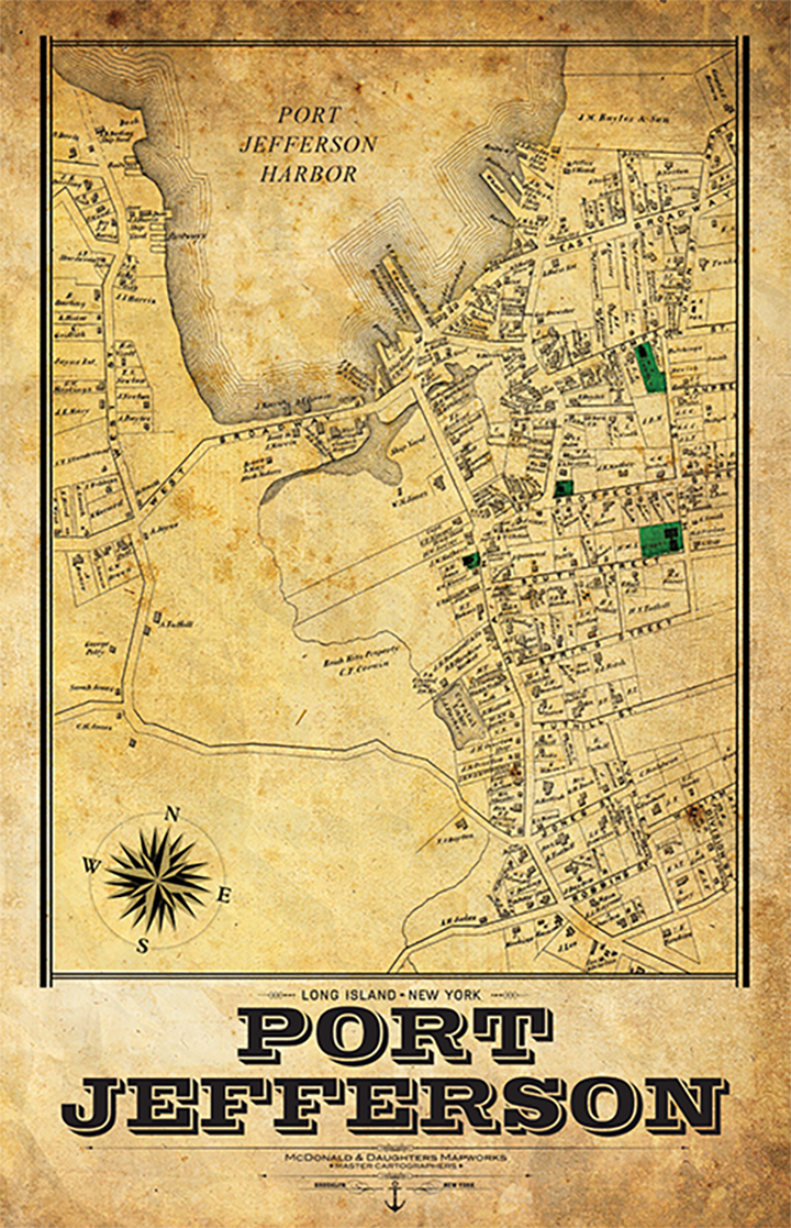 Port Jefferson Vintage Map โ LOST DOG Art & Frame
