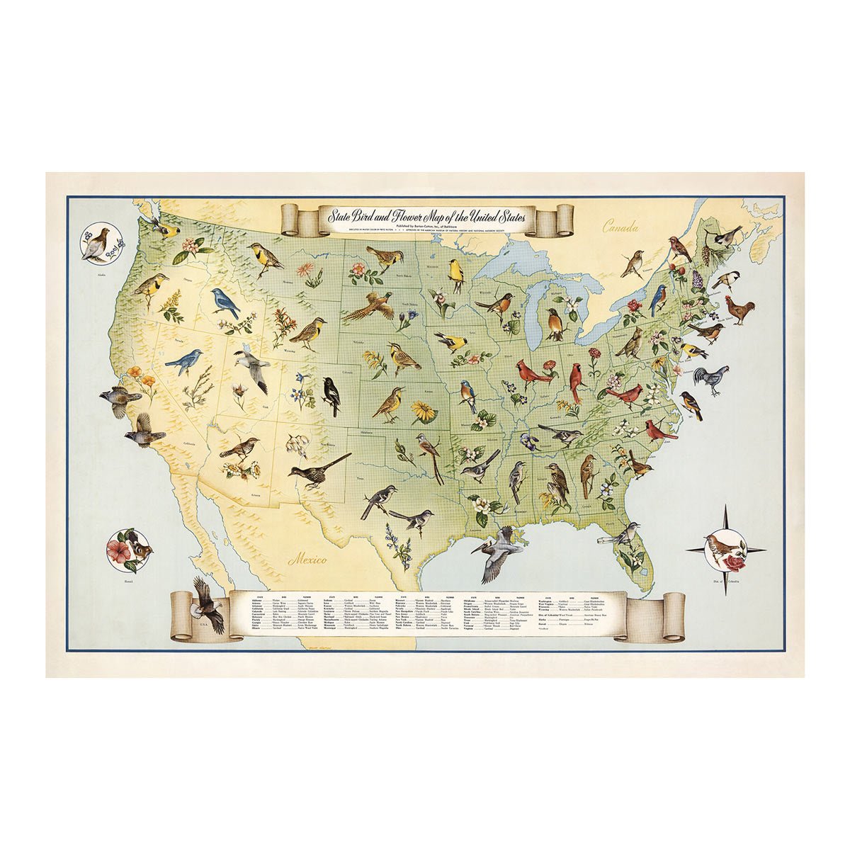 Illustrated Map of US State Birds and Flowers (1965) | Muir Way